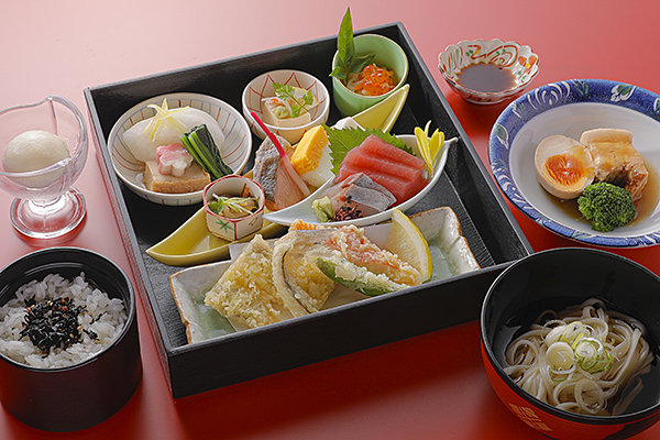 小鉢色々・造里・煮物・揚物・替鉢・御飯・日本そば・季節の水菓子・コーヒー